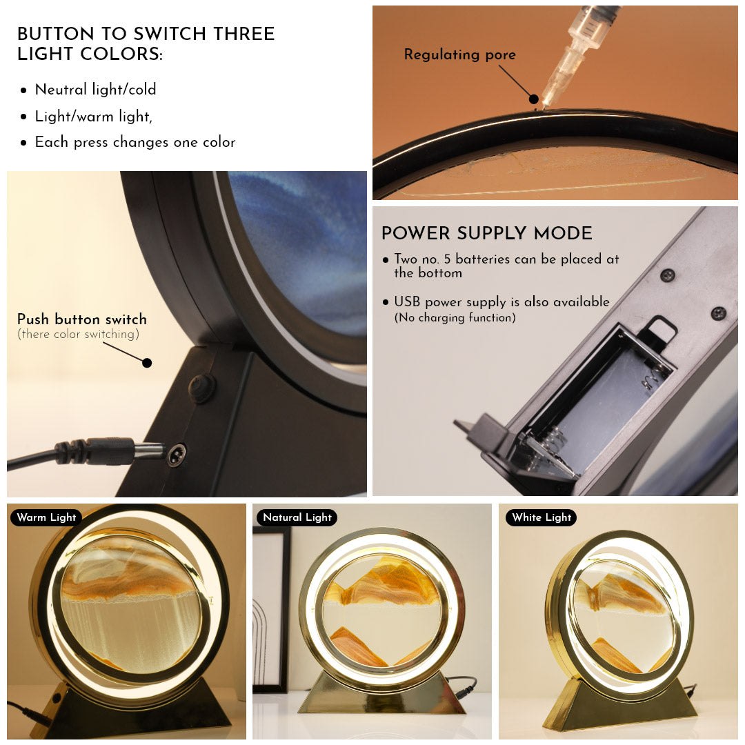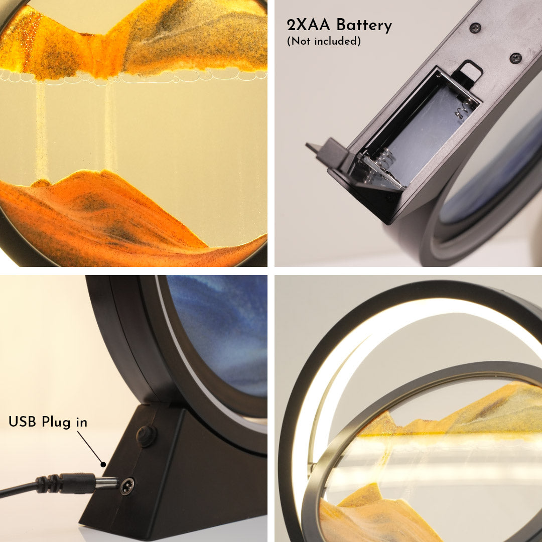 Are you looking for something to calm your nerves? Get ready to add to your collection, a decorative lamp which is beautiful and soothing to look at. It doesn’t get more satisfying than this. The landscape is unlike anything you've seen before. The moving sand art is a round motion frame made of glass with a silicon rim and plastic stand. The 3D glass sandscape has moving and flowing sand inside the frame. You can place this decorative lamp on your desk, bedside, living room or wherever. What's more? It's a lamp! It can't get better than this. Gift it to a friend who loves intriguing room decor.